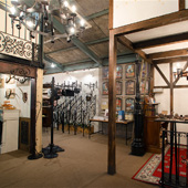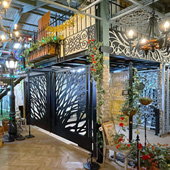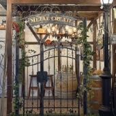 展示場では200m2のスペースにロートアイアン製の門扉、手すり、キャノピー、サイン、