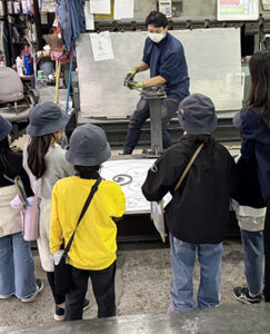 子どもたちは、普段は入ることのない製造現場に興味津々。