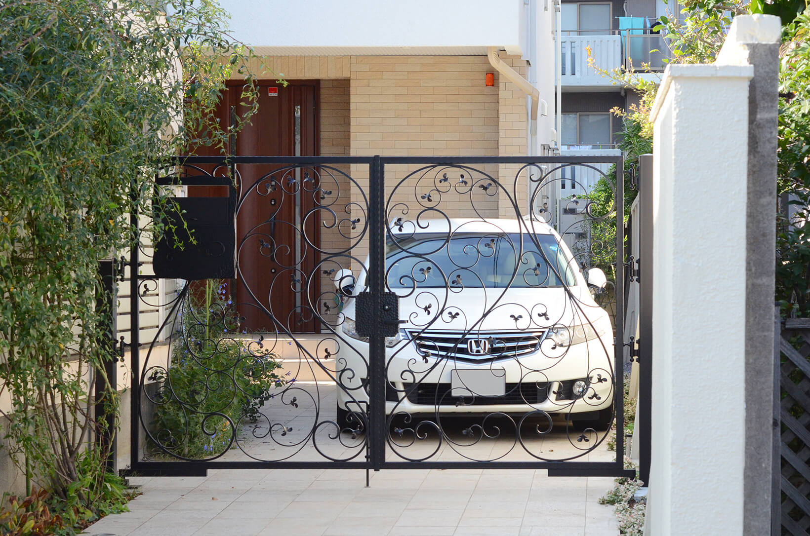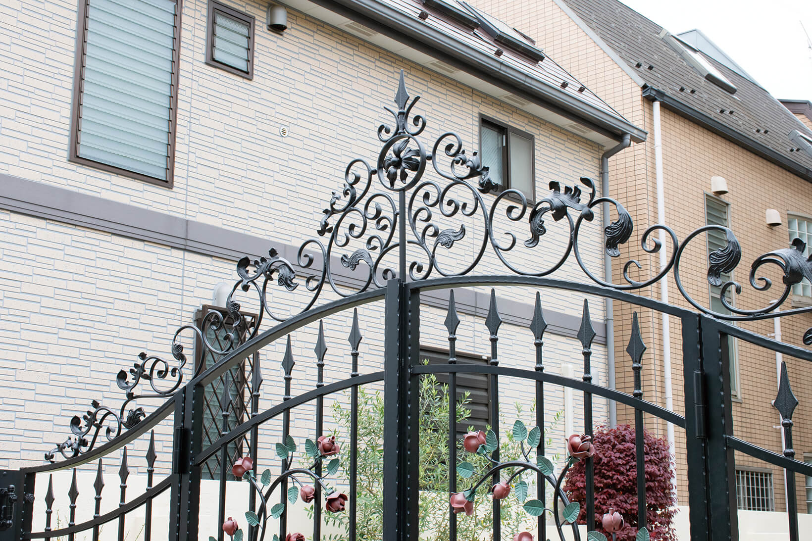 門扉やフェンスは建物の「顔」ともいえるエクステリアの核です。錬鉄を用いることで、建物全体にスタイルと格調高さを与えられます。優雅な曲線美や植物モチーフは、空間全体に華やかさをもたらします。