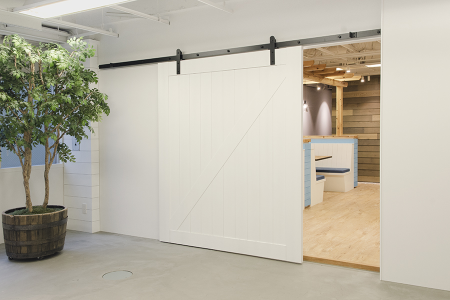 施工後「やはり扉がほしい」と思った時でも、比較的容易に取り付けができる吊り戸レール。デザイン性を意識して、敢えて滑車やレールを隠さずにおしゃれに見せるのが、ヨーロッパの主流なスタイルです。