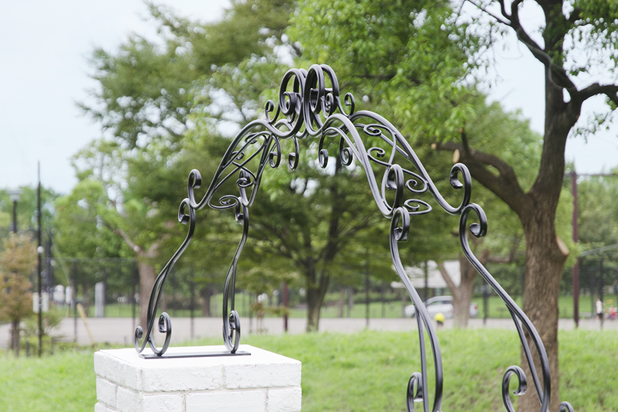自由な曲線で構成された丸棒の中に、大小異なるスクロールを巧みに組み合わせることで、繊細さの中にゴージャスなアクセントをプラス。お洒落なカフェやアンティークショップにも選ばれている人気デザインのアーチです。