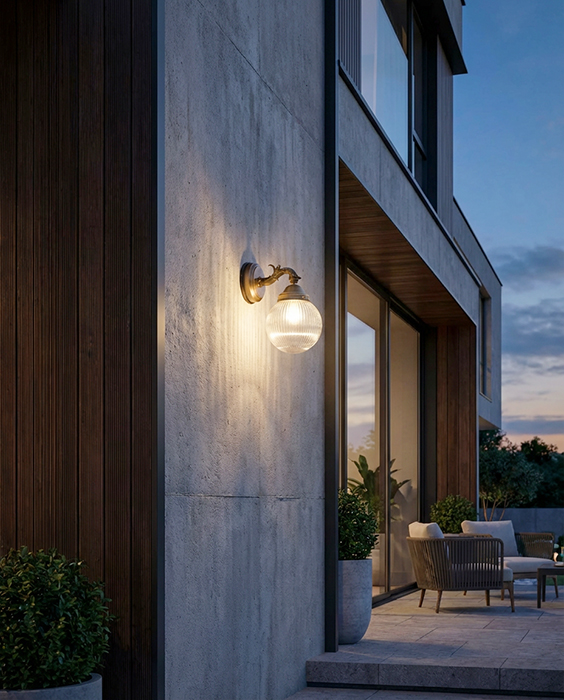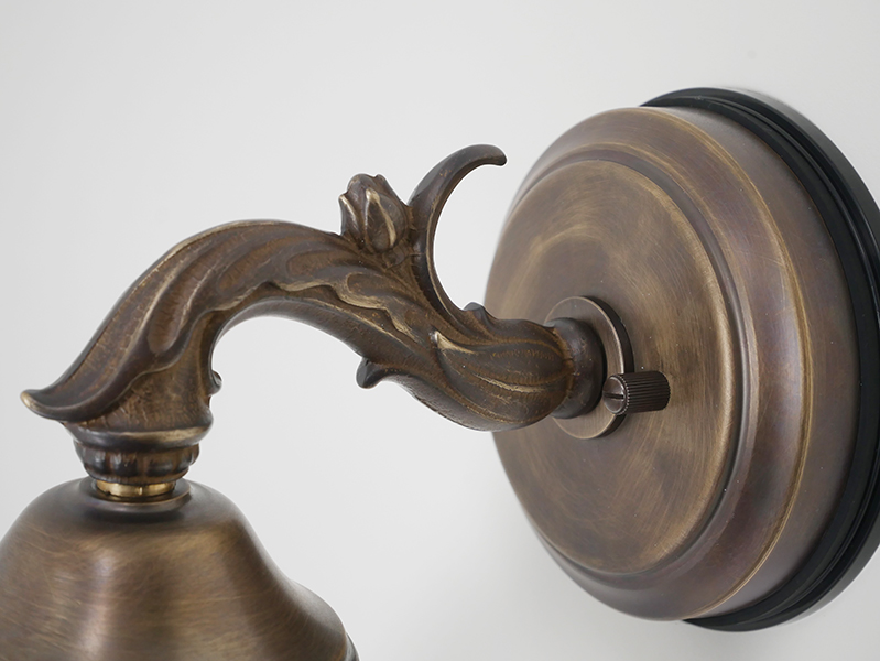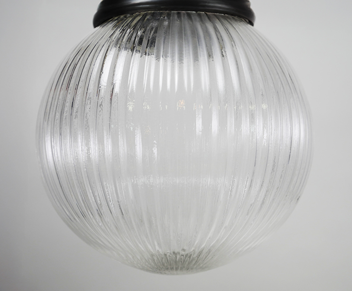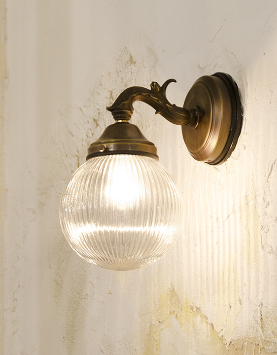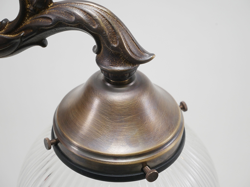 真鍮のベースにアンティーク調シェードを組み合わせた照明。プリーツ模様のガラスを通した光が、シンプルながら美しく広がります。