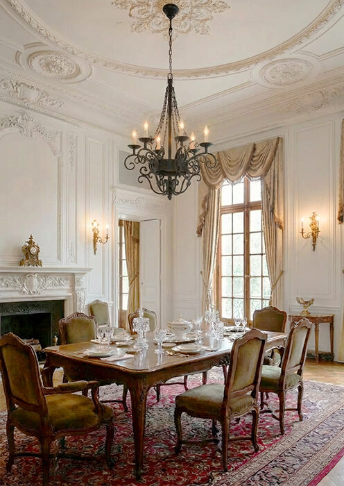 キャンドルより下側をデコラティブにアレンジしたシャンデリア。キャンドルスタンドを支える唐草のスクロールが、中世ヨーロッパの華やかな雰囲気を感じさせます。アイアン鋲やキャンドルカップなど、一点ずつ手仕事で仕上げた、こだわりのロートアイアン製品です。